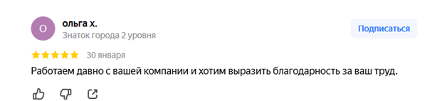 За время нашей совместной работы сотрудники компании показали себя высокими профессионалами, которые следят за качеством выполняемой работы и учитывают пожелания. Надеемся на дальнейшее плодотворное сотрудничество. ООО «Продлавка»